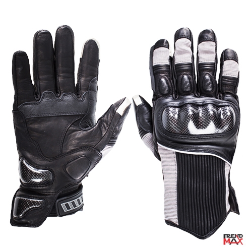 Motorbike Gloves Protection for Outer Shell made by Highly Abrasion Resistant Cowhide, Goatskin & Digital Goatskin Palm reinforced. Protection made of Thermo-Plastic Carbon Shield Fingers & Knuckle Protection, TPR Protector Cuff, Palm Sliders, EVA Foam at Finger & Thumbs, 100% Polyester Lining. Ergonomic Fit : Race Fit, Ventilation for Perforated Leather at Cuff, Adjustment strap at wrist, adjustment tab at cuff, Micro Elastic inserts. Additional Features : Pre-curved finger & palm, Special construction on the shield area for a better fitting and higher protection, Double stitching on key areas, Safety palm seams are sewn to the sides of the fingers for improved strength and comfort, Shock-absorbing padding.